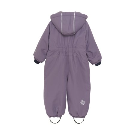 Wunderschöner lila wind- und wasserdichter Schneeanzug mit Rüschenfront von Minymo