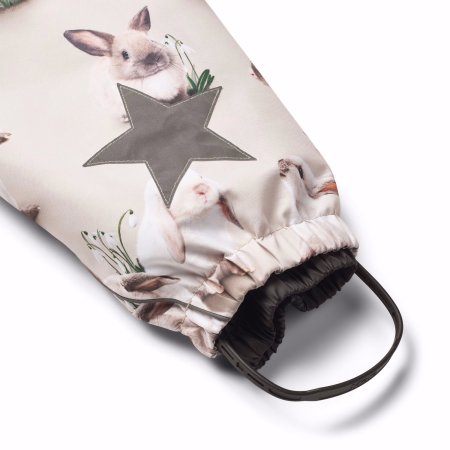 Der Schneeanzug besteht aus atmungsaktivem, windigem und wasserdichtem recyceltem Polyester. Der Schneeanzug hat ein Innenfutter aus Fleece an den Knien, am Gesäß und am Rücken für zusätzliche Isolierung.
