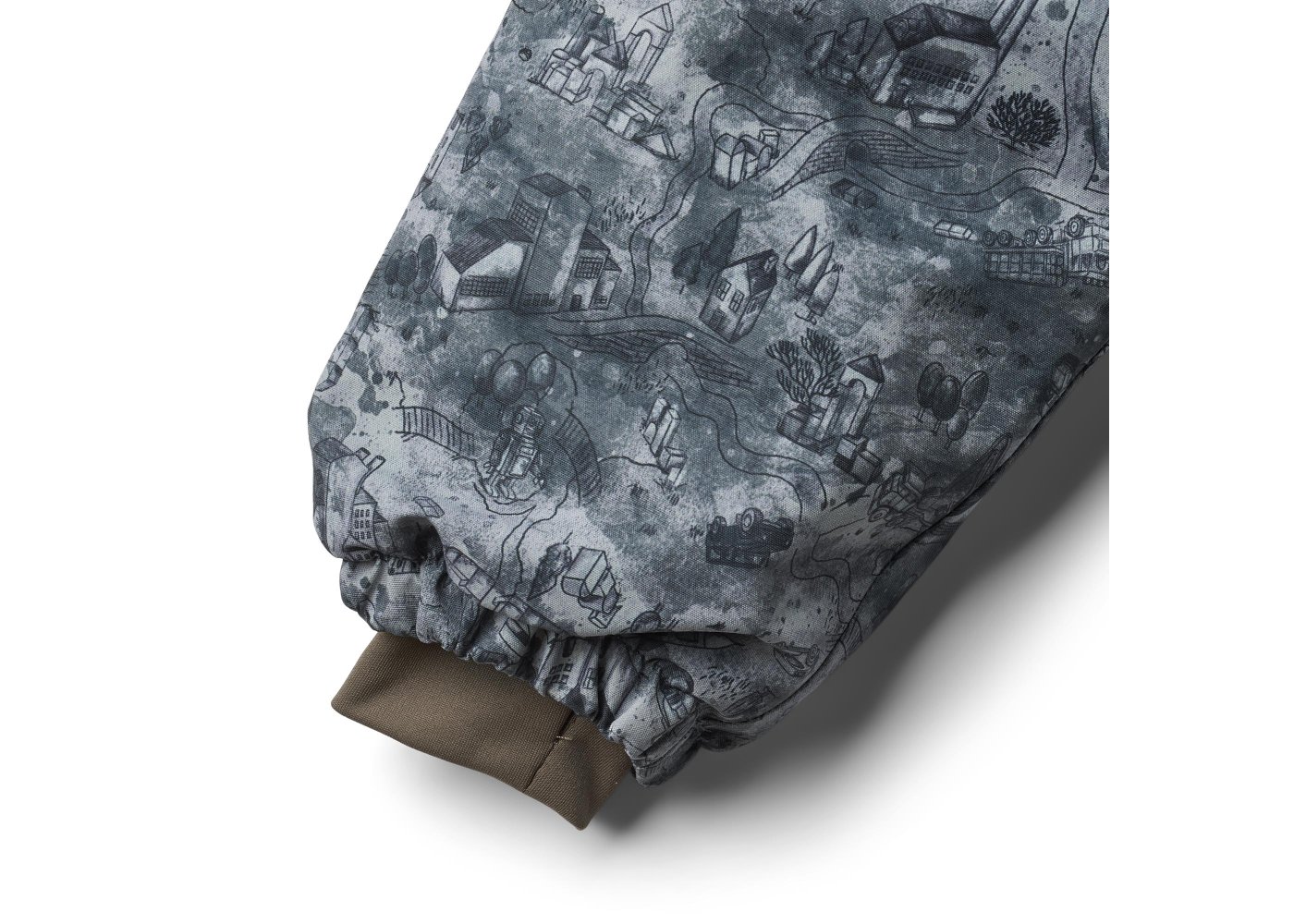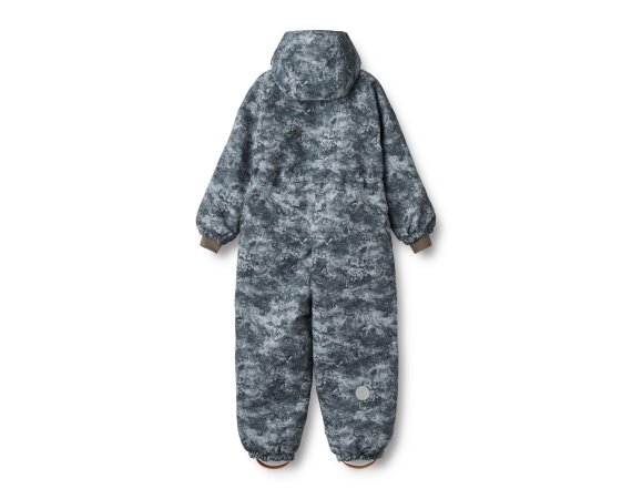 Der Schneeanzug besteht aus einem atmungsaktiven, wind- und wasserdichten Material und hat einen verstellbaren Kordelzug in der Taille, schräge Taschen mit Druckknöpfen und lässt sich vorne mit einem Reißverschluss und externen Windstoppern öffnen.