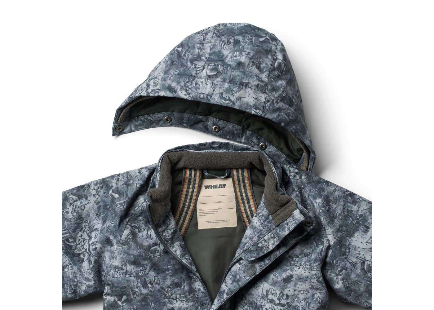 Der Anzug hat eine abnehmbare, gefütterte Kapuze mit geripptem Saum innen.