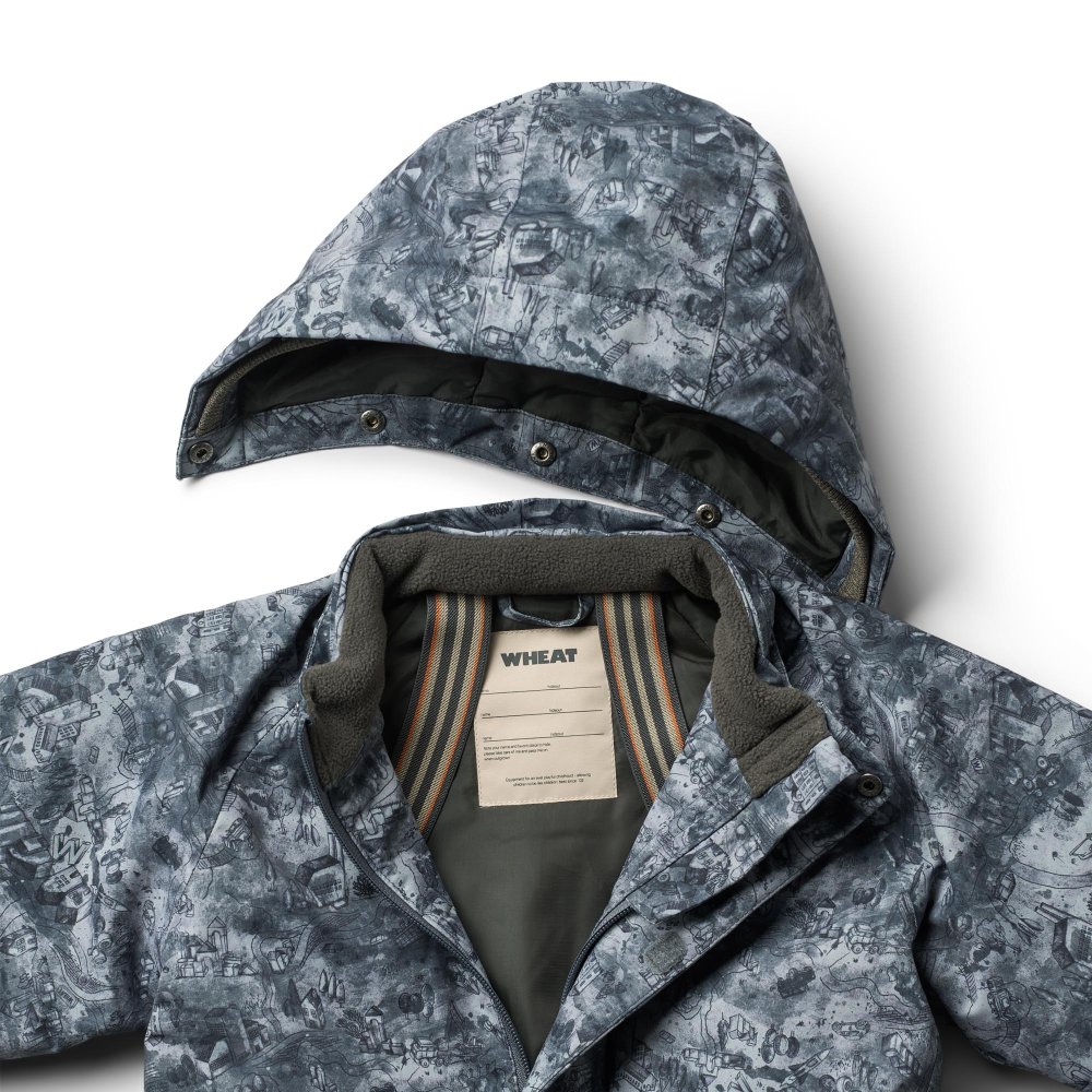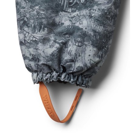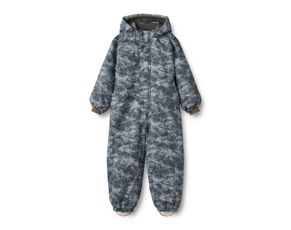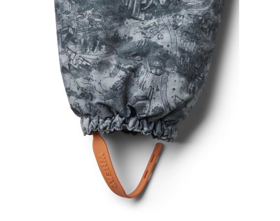 Der Schneeanzug hat ein glatt gewebtes Fleecefutter und einen Gummizug an Ärmeln und Beinen sowie Gummiriemen an den Knöcheln, um ihn unter die Füße zu legen.