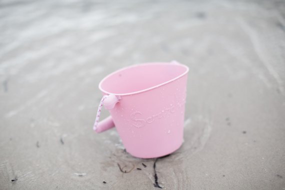 Schöner rosa Eimer zum Spielen von Scrunch.