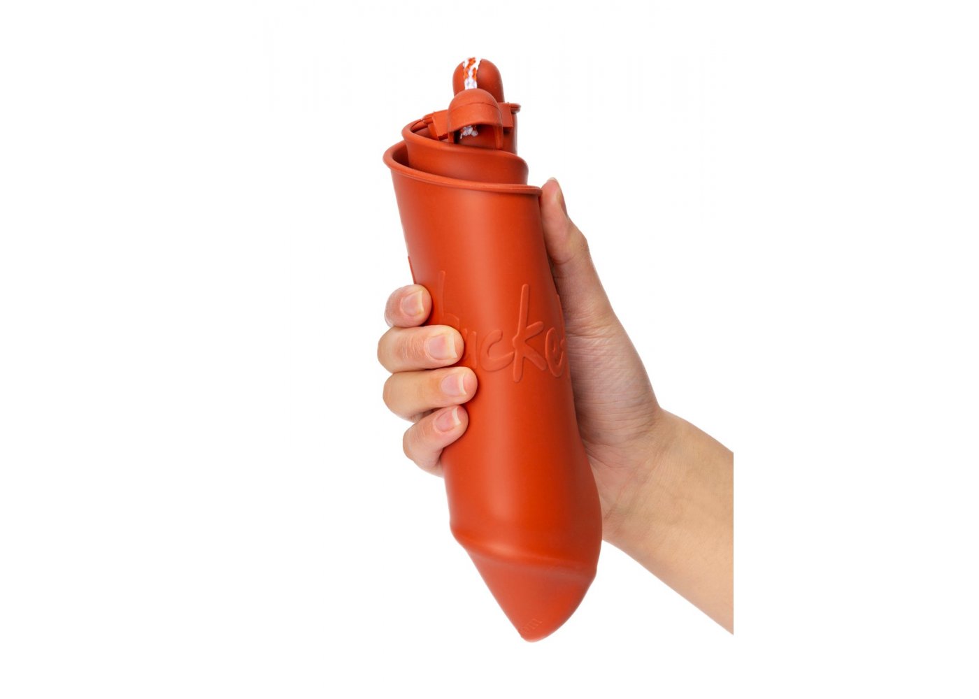 Schöner rostfarbener Eimer zum Spielen von Scrunch.