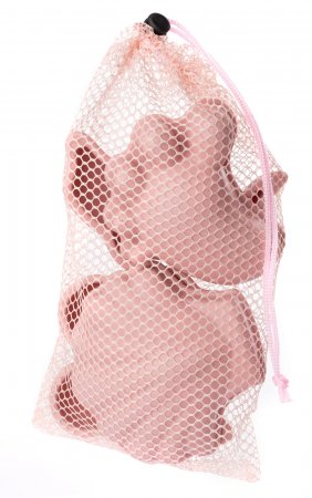 Vier schöne kleine rosa Silikon Sandförmchen im Netz von Scrunch.