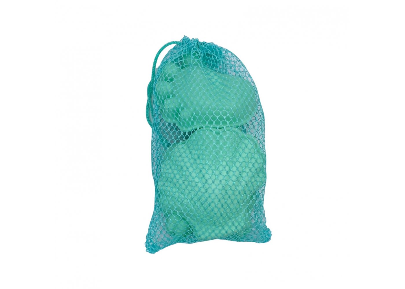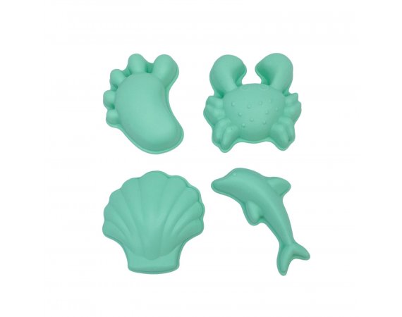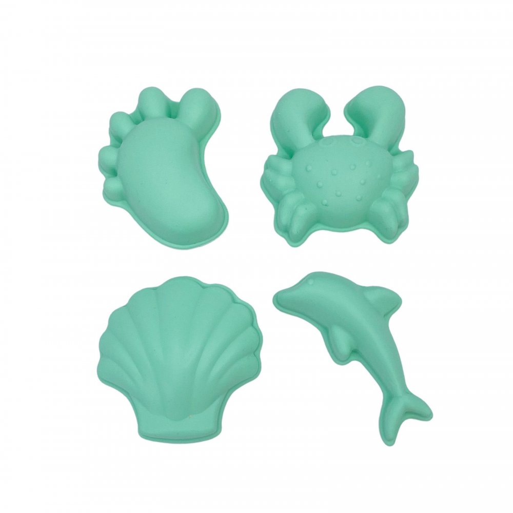 Vier schöne kleine mintfarbene Silikon Sandförmchen im Netz von Scrunch.