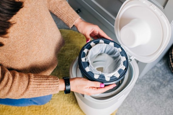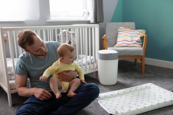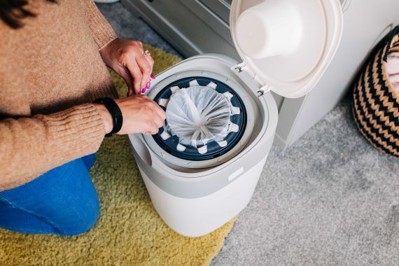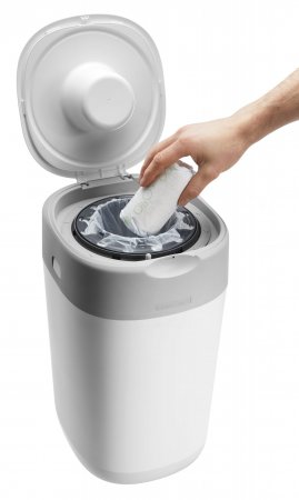 Der Twist & Click Windeleimer fasst bis zu 30 Windeln und erspart Ihnen viele Wege zum Mülleimer im Freien.