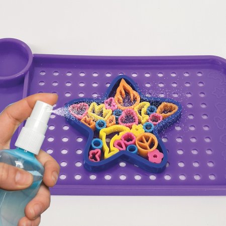 Wählen Sie eine der schönen Vorlagen aus und verzieren Sie sie mit den mitgelieferten Figuren. Wenn Ihre Kreation fertig ist, besprühen Sie sie einfach mit Wasser aus der beiliegenden Sprühflasche. Im Handumdrehen ist Ihr Design einsatzbereit! Es ist ein einfacher Prozess, unglaublich spaßig und am besten ist, dass Sie sich keine Sorgen um verbrannte Finger machen müssen!