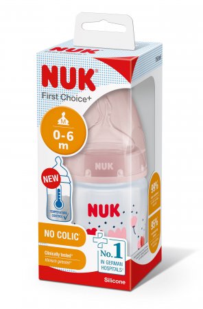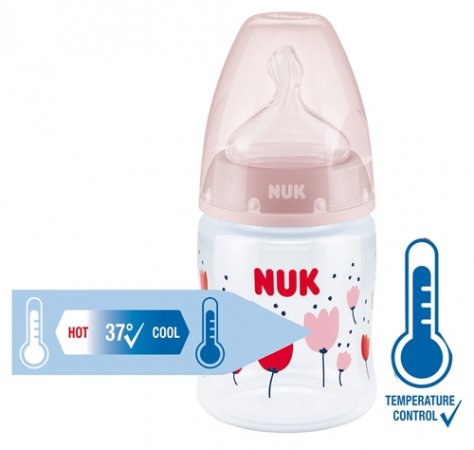 Die NUK First Choice+ PP-Kunststoffflasche hat eine Temperaturanzeige auf der Flasche, die anzeigt, ob der Inhalt die richtige Temperatur, ca. 37°C, hat.