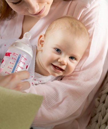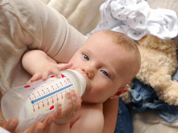 Die blaue Farbe zeigt an, dass die Babyflasche die richtige Temperatur hat.