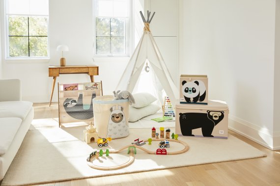 Die 3 Sprouts Aufbewahrungsbox ist praktisch, indem sie Platz in handelsüblichen Regalen Platz findet. Die passen zur Größe der Raumteiler von IKEA.