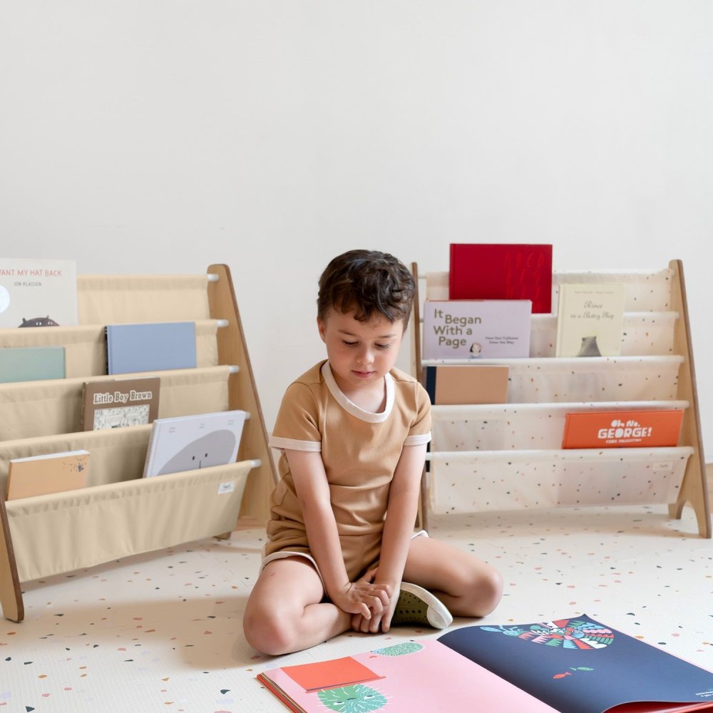 Schaffen Sie die coolste kleine Leseecke für Ihren zukünftigen Bücherwurm mit einem 3 Sprouts Bücherregal.